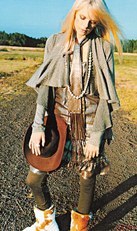 配搭Tips:簡單圖案Tee跟牛仔褲加上長及胸口的長鏈,閃石牌子成焦點。配埋BlingBling耳環、手鈪同腰帶,全街最搶眼。