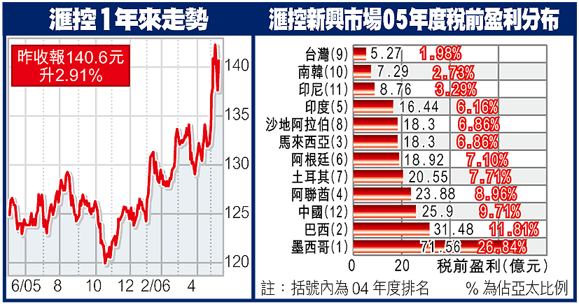 滙控股價在早輪港股升浪中,創出142元的歷史新高,對於不同證券行先後調高滙控目標價,邵銘高表示不作置評,但他指出,滙控股價造好,最主要是集團基礎業務強勁,反而滙兌因素並非關鍵,集團剛公布的全年業績較預期理想,亞太區及其他如中東等新興市場表現卓越,加上滙控股價已有一段時間「沒有太多郁動」,因此投資者累積了若干對股價上升潛力的意願。