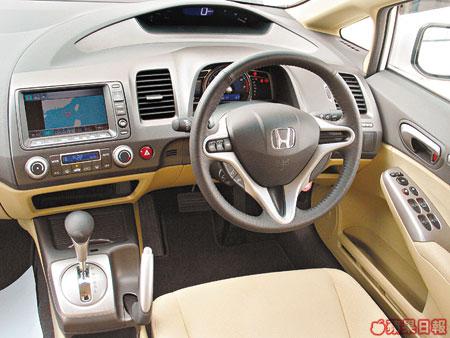 究竟CivicHybrid在車底加裝Ni-MH燃料水素電池後,車廂會否變得狹窄呢?原來係無嘅!我最欣賞是平坦地台和承托力甚豐嘅座椅,讓我這個肥仔坐得舒舒服服,附有透氣頭枕的前座也不錯,只嫌售價接近25萬的它,座椅還不是真皮呢!設備配搭也齊全,中控台除有恒溫冷氣外,也有源自日本的導航系統。