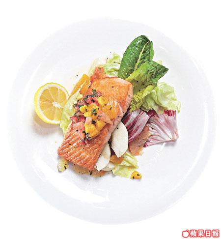 燒三文魚配薄荷葉$178