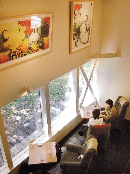 正當賞花走得累之際,剛好看見円山公園的旁邊,有座樓高兩層的純白小木屋。走到門口,便看到一隻小巧可愛的史諾比在對客人招手。踏進店內,更有無數的史諾比在歡迎我們。這間以史諾比為主題的甜品店雖然面積不大,但周圍環境卻花盡心思。舒適的梳化座椅,令人一坐下便不欲起身。配合落地玻璃,感覺剛剛好。牆上掛滿色繽紛的史諾比圖畫,就連洗手間也有其蹤影,使環境也變得活潑起來。店內特設一人座位,適合太太靜靜看書,悠然自得。如你想盡情享受日光浴,亦可選擇露天茶座。此店每月推出特色蛋糕specialsweet,等你月月有Surprise。但最令人驚喜的,還是店內有兩款咖啡,店員會在咖啡面噴上史諾比圖案,和主題互相呼應。看着這些得意的圖案,一瞬間,真捨不得喝下去。