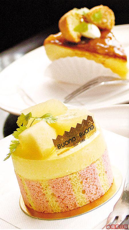 buonobuono置身在寧靜住宅區,全店面積不大,設計簡單,驟眼一看,好像沒甚裝潢。但只要細心留意,可見牆身經特地批盪,線條粗糙。天花吊着一把舊式風扇,就和香港古老的酒樓差不多。窗邊種着小盆栽,點綴環境。值得一提的是廚房幾乎和店面一樣大,只是簡單用木板相隔起來。年輕的做餅師馬不停蹄工作,只為令客人享用高質素的食品。來到這裏,必試最受歡迎的青蘋果芝士蛋糕,面頭鋪上鹹芝士,下層蛋糕紅綠相間,頂層再配上菠蘿,味道略酸,非常醒胃。