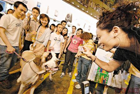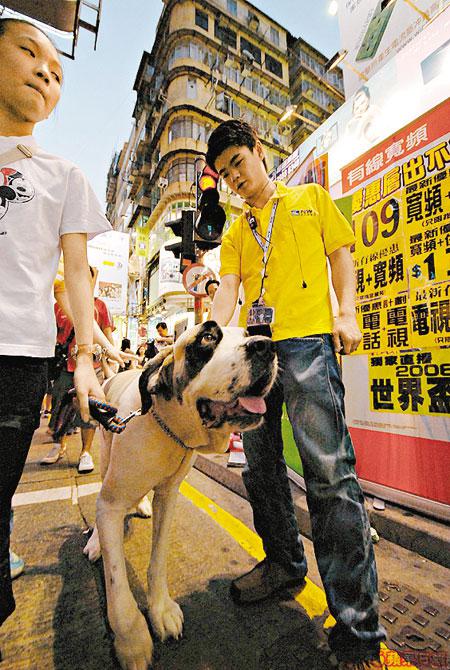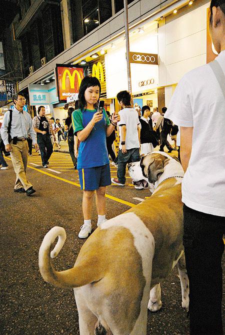 夜行俠其實是隻極可愛的聖班納犬,叫Richael,不過主人Ella嫌這名字太薯,改名叫Rich仔。牠3歲重140磅,一巡街,其魁梧身軀即引起路人注視,牠樣子儍頭儍腦,迷倒不少少女自動獻身,要求抱抱、合照、甚至摸一摸都開心。途人個個毫不客氣,忍不住手摸牠,Rich仔也很豪爽任人索油,脾氣不俗。Ella說:「佢受歡迎程度可以媲美劉華!」所言非虛,事實上我得以邂逅Rich仔也全拜趁墟心態所賜,話說某日行經旺角行人專用區,離遠見到有人群圍圈,閃光燈閃個不停,初以為有歌星在街頭舉行簽名會,越過人群,方知主角原來是可愛的Rich仔,當時牠還是長毛的,今次再見已是飛短後的牠,沒有了長毛,感覺清爽好多,不過Ella話飛短後的牠「殺傷力」大減:「剪咗毛之後,佢個樣好似兇猛咗好多,𠵱家唔及留長毛嗰陣咁受歡迎,好在個樣夠Cutie,儍更更咁都冧到好多女仔埋身。」