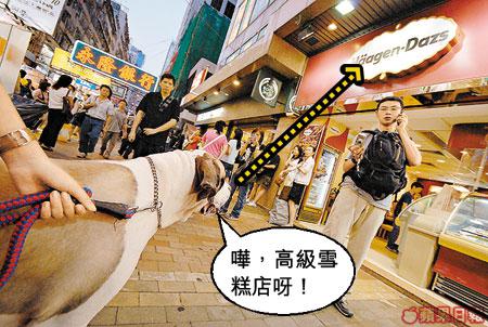 Rich仔很愛吃,試過把玻璃、電池吃進肚子,好彩大命無事。牠最愛吃雪糕,記性又好,Ella帶過牠去哪裏買雪糕,牠就會自自然然認得那條通往便利店、麥當勞的「雪糕之路」。每晚出巡旺角,當行近西洋菜街南的麥當勞時,牠都會份外興奮,不買?撒賴打死都不走!牠亦懂聽「Seven」、「麥當勞」、「雪糕」等字句,一聽到就會狂吞口水,十分得意。我問Ella:「西洋菜街南近地鐵站有間Haagen-Dazs雪糕店喎,Rich仔有無試過Haagen-Dazs雪糕?」Ella即時抿住我嘴:「咪搞!如果畀佢試過Haagen-Dazs,次次經過都話要食,一杯雪糕成二、三十蚊,想食窮我咩?」
