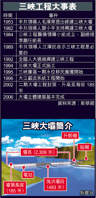 「讓我用一句話來形容三峽工程目前的狀態,是皇帝穿的新衣,現在到了秋天、秋風起,開始感覺冷了。」這股冷風在昨日舉行的三峽大壩澆築平頂儀式上吹起,沒有盛大的慶祝場面,更沒有一名中央高層出席撐場,整場儀式僅歷時8分鐘就結束。