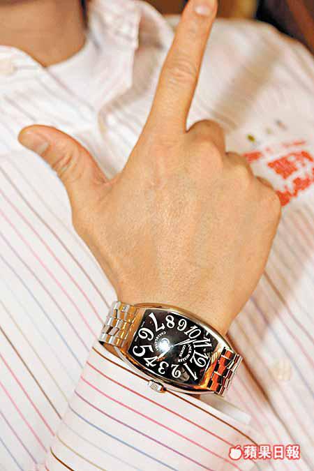「呢隻錶係我入行時第一隻買嘅錶,大概喺七、八年前,對呢隻錶好有感情,當時買都要二萬幾蚊,隻錶撞得之餘又防水,啲機件做得好好,戴咗咁多年都冇加快減慢,近年仲畀人炒到成三萬幾蚊,真係冇買錯。我自己都儲咗幾隻唔同牌子嘅錶,最貴嗰隻差不多四萬蚊。」