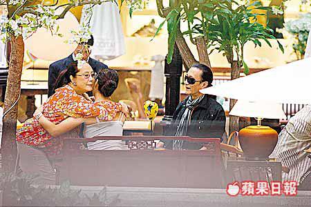 昨日香港時間下午五時許,四哥與身材惹火的女友及數名友人抵達君悅酒店checkin。大約半小時後,四哥與女友離開酒店往隔鄰酒店的露天茶座跟拉姑會合,原來在泰國居住、粵語片時代跟四哥拍過拖的嘉玲也在場,連計前妻拉姑和現任女友,四哥與三個新歡舊愛濟濟一堂。不過最難得的是拉姑跟四哥新女友相處融洽,就連嘉玲這位舊相好,一見四哥新女友也表現熱情地互相擁抱,彼此全無芥蒂。
