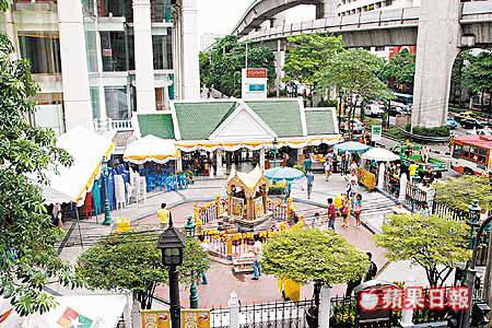 坐落於曼谷市中心君悅酒店旁的四面佛,今年三月遭狂徒破壞,經過六個多星期搶修後,四面佛已修復完畢,並於今日泰國時間上午11時39分(即香港時間中午12時39分)吉時在君悅酒店原址舉行開光及歸位儀式,由泰王御用高僧ThepMuni主持。