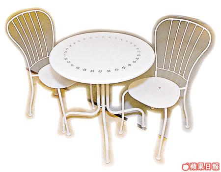 焗漆鋼質圓枱、椅,款式充滿歐陸味道,最適合配襯西式家居布置。枱面和椅面均用上通花設計,賣相精緻,同時亦有助排水,可防止因積聚雨水而造成焗漆剝落,長期放露台都唔怕。