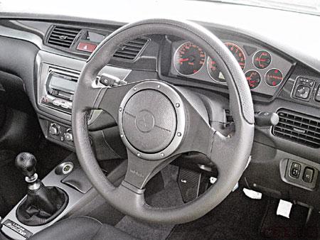 車廂有否大一點的分別?當然有,而且是十分大的分別,就是少了一對由Recaro提供的前座!這個設定是廠方刻意的安排,有開過Evolution的人也知道它的橫向加速力有多厲害,坊間用猶如行在路軌上的列車、車身Fing極都唔甩、咬住個地唔放等等用來形容Evolution,但有否想過車內的人,是極需要一張有上佳承托力的桶形座椅,才可激走?否則是有一定的危險性。廠方刻意用上Cheap款,是等你買車後即時換上一對賽車專用的桶椅。你問我這個超級原裝前座好不好?唔……它們是舒適的,但快車時就差很遠。此外,出口版RS的中控台、軚環、錶板等等也與GSR的沒有分別,買回來只換上桶座便可。
