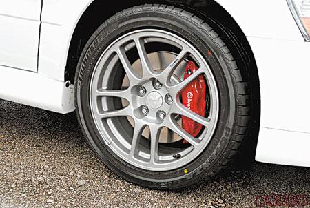 E9RS與上年來港的日本版GSR不同,這是出口至歐美等地的RS齋版車。一般而言,RS版即是輕量版,剔走車上多餘設備,以減低成本和車重,令顧客以更平的價錢買入部方便改裝的車去參加比賽。出口版RS的外表與早前的GSR幾乎沒有分別,給你1分鐘時間找出不同處。