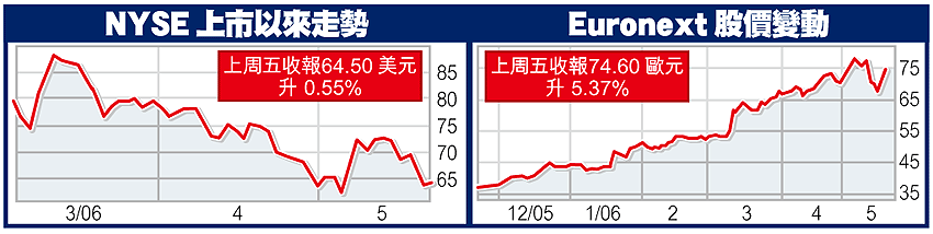 以上周五收市價計,紐交所市值為100.55億美元,Euronext則為107.21億美元。