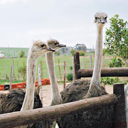 如果要選一款雀鳥代表南非,鴕鳥一定是必然之選。想觀賞牠們的自然生態,大可以到野外的自然保育區。不過如果要近距離接觸牠們,最佳方法就是到鴕鳥園。鴕鳥園的鴕鳥種類多,有來自南非本土的,又有來自北非的,亦有來自澳洲的。除了可以觀賞,到鴕鳥園更可以餵飼牠們。大部份鴕鳥園的鴕鳥,也是人工飼養的,也有些是在野外飼養的,鴕鳥可以在大自然環境自由自在的跑跑跳跳。鳥農Matt負責照顧牠們的日常起居,他說:「我們在野外養鴕鳥,每日定時餵牠們,希望牠們肥肥白白。」問到他會否吃掉他飼養的動物,他就說:「我也會吃鴕鳥肉,因為是我們的日常食糧,情況就像其他人養雞一樣。不過我盡量不會吃自己養的,由細養到大,始終有點感情。」
