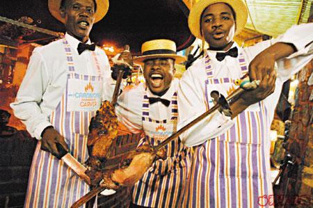 Eric解釋完就端上一串肉,他叫我猜是甚麼動物。我看着那串黑麻麻的肉,似是牛肉,但又似羊,Eric切了一片讓我試一口。口感有點似牛肉,入口都幾嫩,肉質帶點牛肉的鮮味,不過就更羶。然後Eric笑笑口跟我說,那是犀牛肉。不是吧!我上午才在野外見過牠,現在吃了牠?噢,對不起,我不知道是你呀,犀牛先生,如果早知的話,我不會大口大口的把你吃掉,對不起!這裏除犀牛還有野鹿、羚羊等野生動物,當然也少不得鱷魚。如果不忍或怕吃野生動物,這裏也準備了豬牛雞一類的家禽家畜。