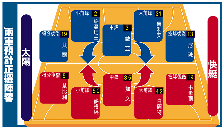 太陽將於周一在主場恭候快艇上演終極一戰,相信最終可憑球員經驗及卻迪湯馬士的復出淘汰到訪的快艇,少讓4分的太陽可望波盤齊贏。