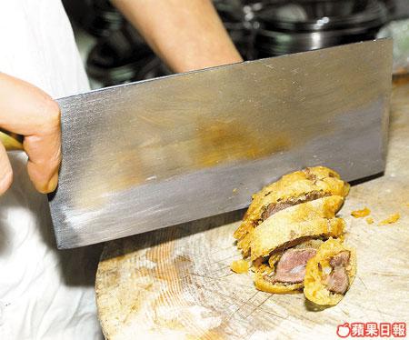 脆炸後的牛坑腩仍能支解得完整無缺,落刀要用陰力,力度也要平均。