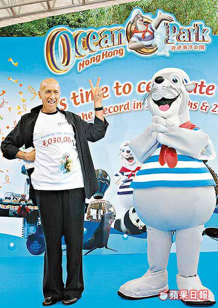 【本報訊】海洋公園昨日宣布,本財政年度首十個月零二十八日,入場人數已達403萬人,已超出去年全年的紀錄。海洋公園主席盛智文說,公園的旅客200萬為內地旅客,約175萬為本地旅客,餘下的為來自海外旅客。 盛智文說,以往迪士尼樂園在外國城市開幕後,當地的主題公園入場人數均會下跌約25%,但海洋公園入場人數反而上升20%。 海洋公園昨日慶祝第4,030,001名旅客入場,陳先生一家四口將獲發終身海洋公園免費入場證及四百萬粒糖等禮品。