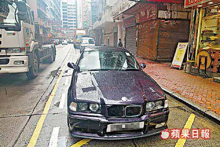 【本報訊】車主飲酒後即使沒有駕駛,如沒有好好管理自己的汽車一樣可觸犯酒後駕駛罪名!一輛寶馬M3雙門跑車於昨晨7時許,沿豉油街西行左轉入花園街時,高速掟彎失控,鏟上行人路直衝前撞向一個報檔,將報檔膠帳篷及多叠報紙被撞塌四散在地上。其間坐在檔內的姓陳檔主(50歲),閃避不及被跑車撞倒受傷,且被用來擋雨的膠篷塌下蓋着頭,頻頻呼痛,由途人報警。