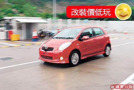 老實說,我跟Tobey一樣,也覺得普通版Yaris個Look雖則可以迎合年輕車迷的口味,但愛玩愛型的,卻只好望車興歎,又或只好到街外找一些改裝公司幫幫手,加多1套BodyKit才覺得圓滿。未知代理方面是否知道Fans們的訴求,最近特別推出了YarisSport特別版,先不說車廂內的裝飾有甚麼改動,單在外表已看得出它的分別,例如加有門邊鏡連指揮燈、車頭霧燈跟尾翼等等,看起來已經醒目得多,但如果你覺得還未夠喉,想多加一點東西的話,那不妨考慮多付$7,560,加裝頭尾擾流器跟車身兩側裙腳,令部車望落似小跑車多於原來的小車性格。