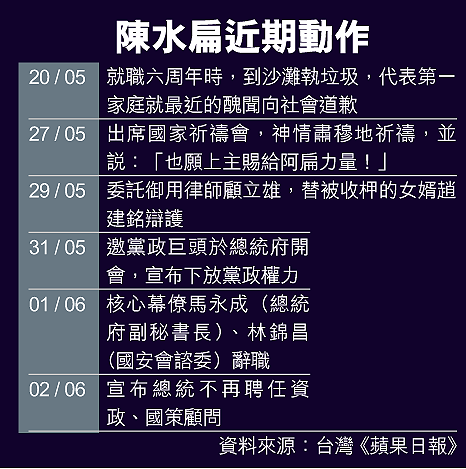 馬英九也以強烈語氣向陳水扁喊話,如果負隅頑抗,斷尾求生,不僅威信難以領導國家,且隨弊案逐一浮上枱面,人民憤怒的情緒,終將造成信用與道德雙雙破產,顏面掃地黯然下台。