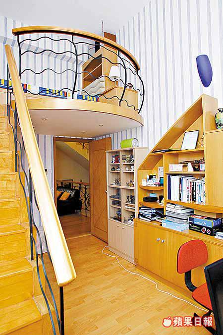 地庫1樓由4房及偏廳組成,由於樓底夠高,兩個兒童房皆建有閣樓,盡用空間;其餘兩房布置相近,四正實用。主人套房則獨擁最低層,面積逾1000方呎,包括特大浴室和衣帽間,外接私家花園,自成一隅。