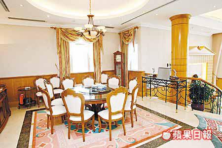 介紹的董事屋樓高3層,以下行式設計,地下入口為半層式上落的大廳,客廳樓底逾14呎,落地大窗面向大潭灣,景觀極具氣勢,客飯廳各擁寬敞又獨立的間隔,盡顯大宅風範。