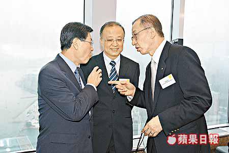 巴士阿叔名言「有壓力,未解決」熱爆全城,日日有人講,佢嘅經典「一陽指」動作都人氣高企,幾乎隨處可見。唔信?有圖為證。(圖一)華人置業行政總裁劉鑾雄(左)及主席劉鑾鴻(右);(圖二)港交所執行總監霍廣文(中)及鷹君羅嘉瑞(右);(圖三)南豐集團主席陳廷驊(右)。 梁鑑章及李潤芳攝