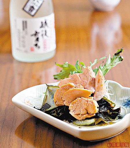 夏天魚安魚康魚夠肥大,魚肝都滑啲,油份多啲又補啲。處理魚肝都好煩,粗心啲大力啲就會整爛,好考師傅手勢。魚肝味濃,「越後育酒」濃厚夠辣,最佳配搭。