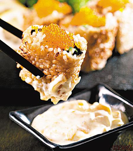 輝哥將燒飯糰的方法用落反卷度,要點大量的芒果芝士醬先好食,炸反卷外層變成飯焦咁,餡內有炸蝦、蟹柳、青瓜絲,口感清爽。