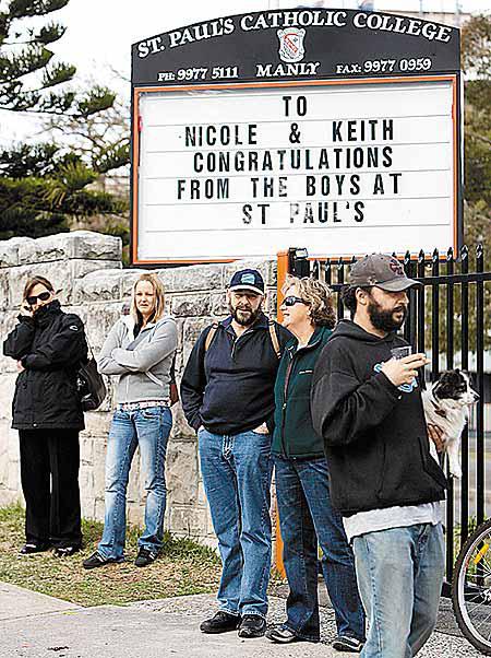 於婚禮舉行前夕,全球各地傳媒蜂擁而至,悉尼警方主動封鎖數條街道,但數百名影迷一早於切雷蒂紀念教堂外守候,為一對新人送上祝福。參與婚禮的230名來賓先後來到教堂,曉治積曼(HughJackman)是首位抵達的影星,其後羅素卻爾(RussellCrowe)、娜奧美屈絲(NaomiWatts)、傳媒大亨梅鐸(RupertMurdoch)及其妻子鄧文廸等紛紛到場,其他親友則乘坐旅遊巴抵達。