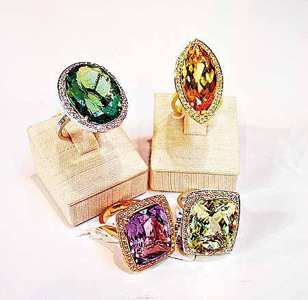 利用不同顏色半寶石製成的「大戒指」,展現出歡愉的夏日色彩。UnicornJewelryDesign