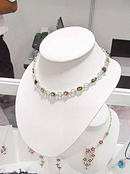 以不同顏色半寶石Tourmaline,加上白鑽及金製成的頸鏈,是FortuneWell的最新力作之一,出口價52,000港元。