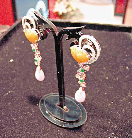 雖然是以玉石材料包括黃玉和紫玉製造,但HimmyJewellery展示的這對耳環,充滿時代感,令人眼前一亮。