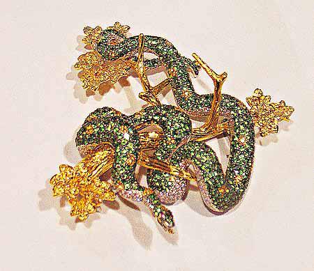 這款蛇形心口針,集鑽石、18K金、黃寶石及綠寶石製成,是OmniaJewellery的精心傑作。