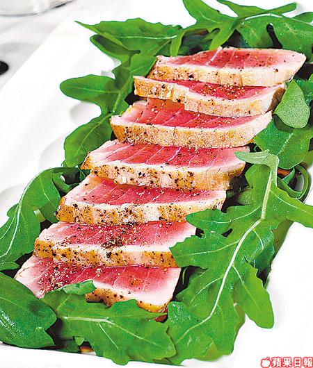 嫩煎吞拿魚件伴火箭菜沙律紅醋汁$118