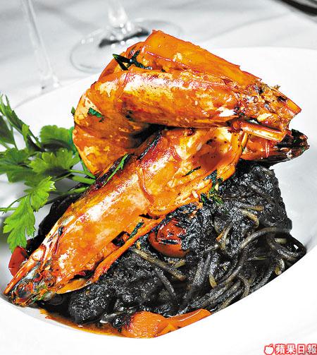 大蝦肉質結實有嚼勁,加香草及橄欖油仍難掩蓋其原汁原味,意粉味道調較得酸酸甜甜,仔細點咀嚼,可吃到意粉滲透出來的墨魚汁味。