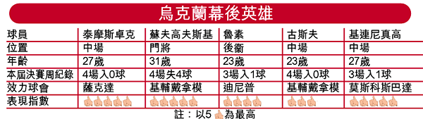 世界盃讓球員成名,更可提高國家凝聚力。1991年從前蘇聯獨立出來的烏克蘭,在政治上備受強鄰俄羅斯恐嚇,天然氣供應要看對方臉色;本屆世盃,在教練布洛堅和舒夫真高兩代球王攜手下,首次參賽即入8強,為國人帶來14年來最愉快的夏天。文:法比奧