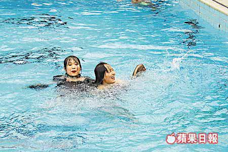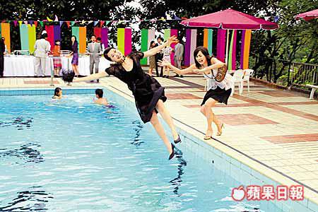 葉童及陳法拉均表示已經打好底防走光,當正式拍攝時,泳術一般的陳法拉喝了多口池水,上水一刻更是肉光四射,非常性感。至於葉童落水後面部化妝全部溶掉,由美婦人變成濕身「丫烏婆」。問她可有飲池水時,葉童說:「冇飲到,所以還好。」此外,昨日見陳法拉右手手掌受傷,她說:「我今朝set頭嗰陣唔小心將捲髮器調轉咗攞,點知俾熱嗰邊燙傷隻手。」