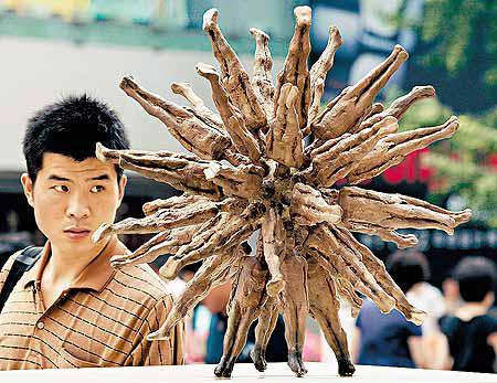 北京奧運即將於08年來臨,王府井大街正舉行「奧運雕塑展」,展出來自56個國家和地區的290件參選作品。其間,觀眾可現場投票,最終與專家意見㗝總,評出獲獎作品。 圖一是中國藝術家的參賽作品,圖二則是斯洛伐克參賽者的作品,現場觀眾均看得非常投入。繼北京後,上述作品將陸續在天津、廈門、鄭州、長春、太原、石家莊、寧波、南寧、深圳、香港、澳門等十餘個城市或地區進行巡迴展出。 路透社