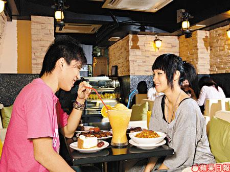 食完正餐,Mo仔膽粗粗約靚雪過對面街的「想入啡啡」歎「事後啡」,靚雪心郁郁:「見你個樣都唔似壞人,同你過去Hea吓啦。」Mo仔大獻殷勤,除大杯到好似巨型花樽的沙冰外,又點了Handmade蛋糕。瞬間一枱食物,見靚雪心花怒放,Mo仔出招:「咁大杯沙冰你飲唔晒嘅,不如一齊飲咯?」靚雪也不笨:「咪嘞,我飲細細杯咖啡,沙冰留番畀你啦。」