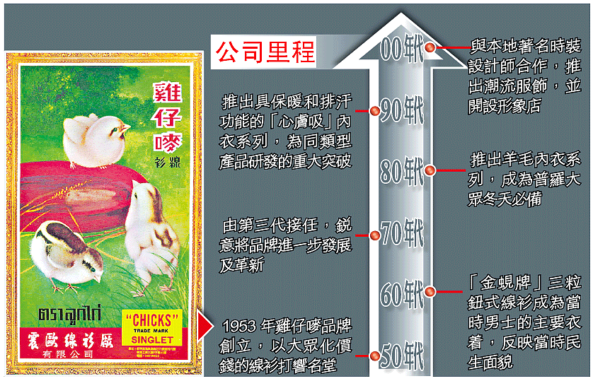 曾被選為「香港十大名牌」的「雞仔嘜」,部份消費者的印象,可能仍停留在老氣的羊毛內衣上。事實上,這個已逾50年的本地品牌,近年經過多番改革,包括請來城中著名設計師合作,現已蛻變成為「潮人」也追捧的牌子。