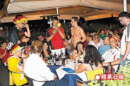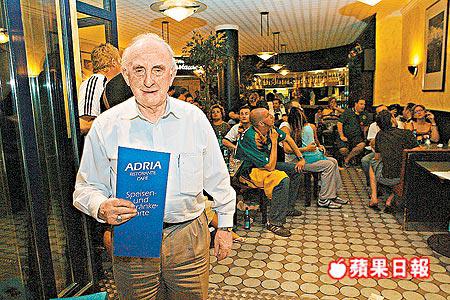 意大利餐館Adria的82歲老闆WilliamGrun表示,餐廳平時很受德國人歡迎,這段世界盃的日子也令該店提升4倍營業額;他相信德國球迷冷靜了幾天後,會再在周六出動支持德國打季軍戰,他正期望另一新高出現。