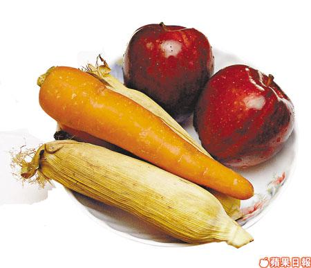 1.洗淨粟米、紅蘿蔔和蘋果。
