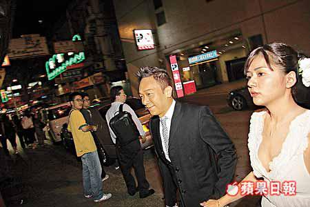 至昨日凌晨12時多,家強與妻子離開會所,引來大批傳媒爭相拍照,場面一度混亂,身穿禮服的家強與穿大低V晚裝的Makiko在助手護送下登上七人車,直駛灣仔王子酒店開P。抵埗後家強面露淺笑,其妻則舉止斯文,由叼煙紋身漢護送至頂樓的酒吧,豈料五分鐘後即有近20名軍裝及便衣探員到場查牌,有警員更向記者八卦為何有傳媒聚集,逗留約20分鐘後離開。