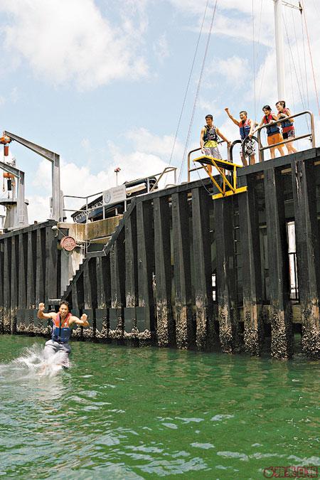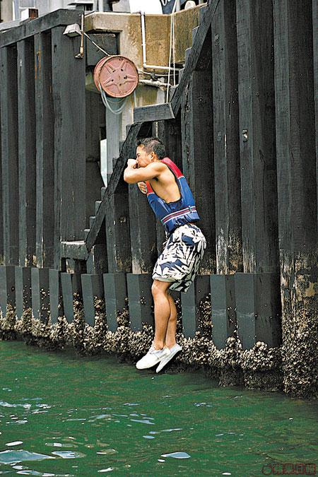 挑戰:要由三層樓高嘅碼頭跳落海。