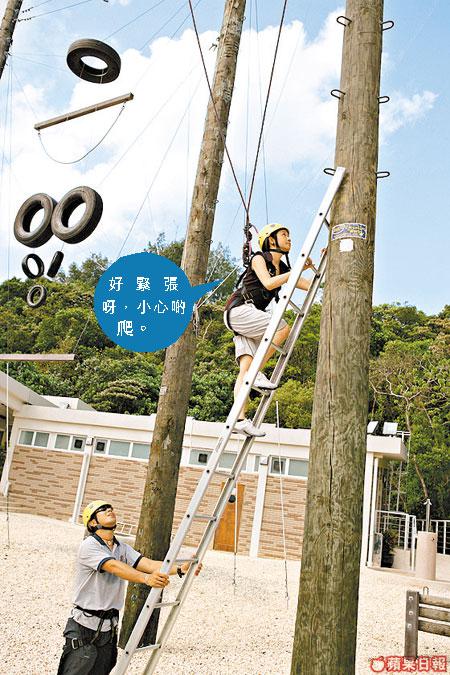 挑戰:爬上10米高木柱,企穩再跳出去拍紅色波。