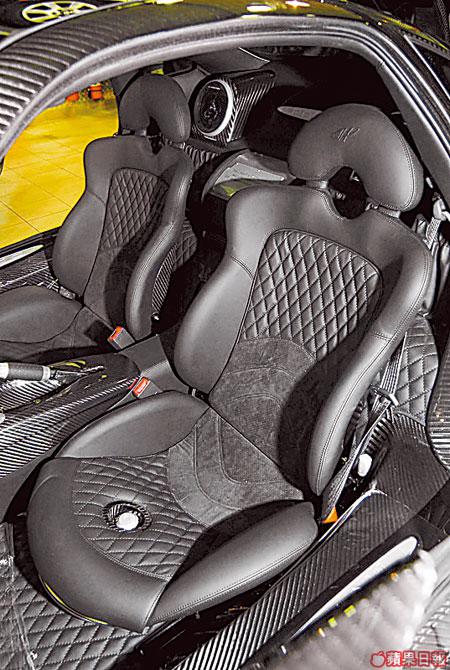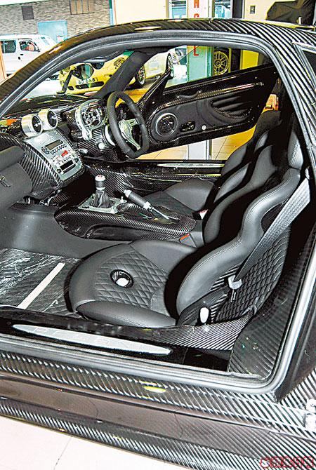 這架由意大利車廠為紀念已故5屆一級方程式世界冠軍阿根廷車手J.M.Fangio而特別設計的ZondaF,是上一代Zonda的改良版。PAGANI向來以打造碳纖車身出名,為求達到每部份都完美無瑕,所以會以人手打造,每個接駁位都有對稱效果,除此,車內車外每部份組件亦是由人手去做,每年只能生產25架,而香港獲得6架配額,就算想訂購,都要等9個月先有貨。除車廂顏色可為車主度身訂做,車主仲可揀選自己喜歡的車廂顏色,而城城今次選擇全黑色車櫳,襯番個碳纖車殼,望落亦無鮮紅色咁揚。