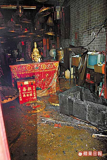 消防員入廟後,發現近右邊的一張解籤枱及雜物着火焚燒,立即開一條喉迅速將火救熄,幸火勢未有波及附近街坊供奉的觀音大士,亦無人受傷。消防員救熄火警調查後,相信火警因有善信不小心遺下香燭火種引起,並無可疑。