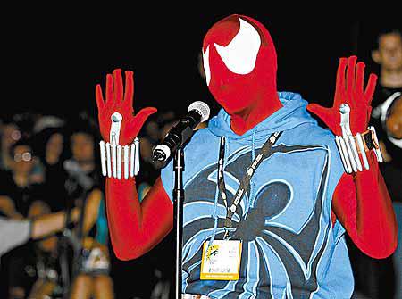 美國聖迭戈(SanDiego)周末一連兩天舉行一年一度的全國最大漫畫展,不少漫畫英雄如蝙蝠俠(Batman)中的急凍人(MrFreeze圖一)和蜘蛛俠(Spiderman圖二)亦有現身贈興。
