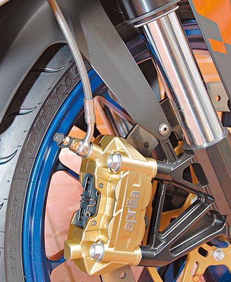 簡單啲咁講,ApriliaRS125嘅真正身份,其實係一部身懷賽車基因嘅入門級街車,因為佢內內外外都有晒賽車嘅裝備。首先,廠方特別採用125GP賽車技術嚟開發,雖然新車引擎同上一代無分別,但新車配備了全新設計的低風阻「啡呤」、簡約車身線條、倒立式前叉、4活塞式制動卡鉗等各種後天優點,所以雖然新舊兩代都是採用同一引擎,但對比起來,新RS125在路面的速度表現還是比舊款優勝。